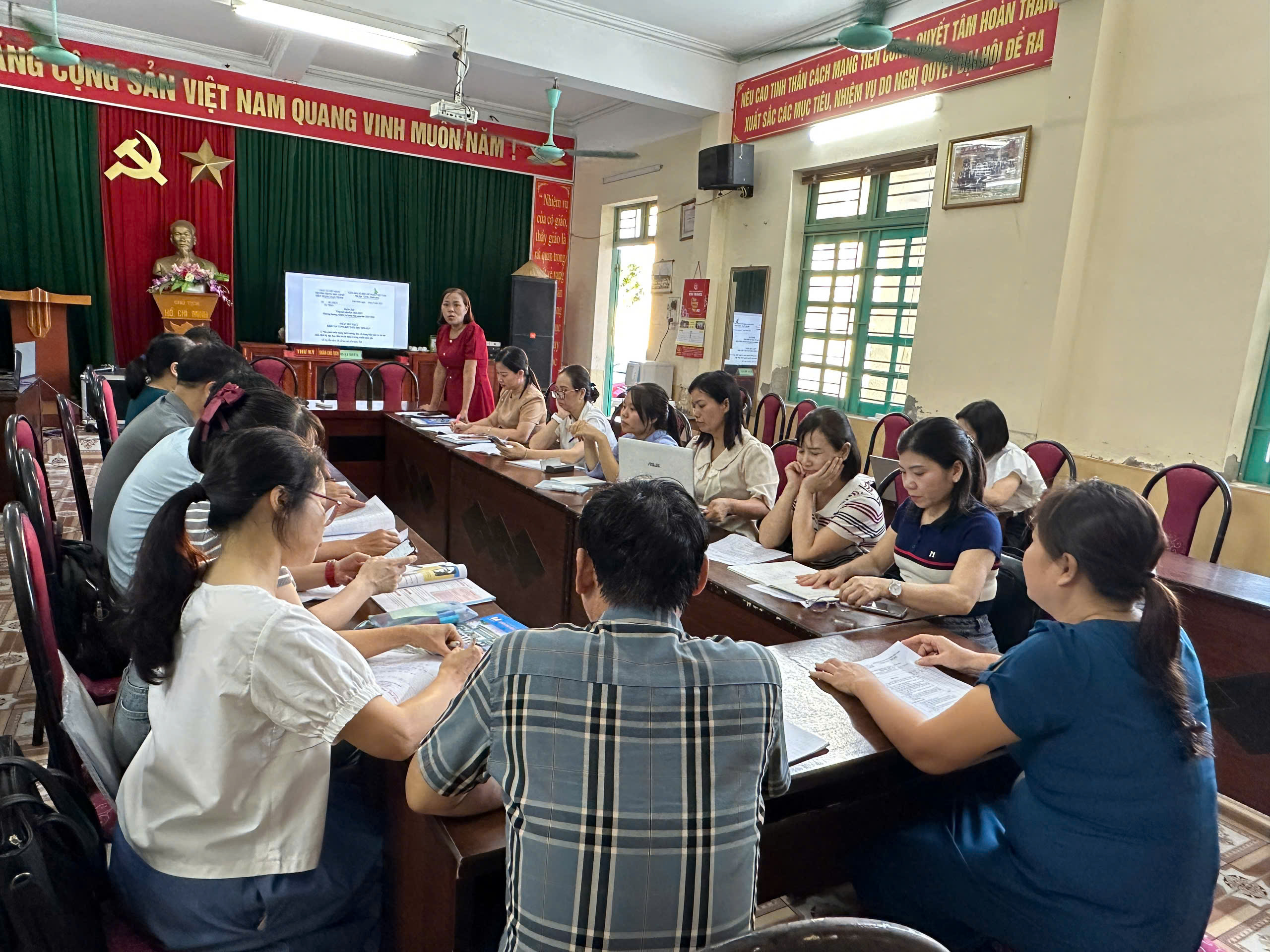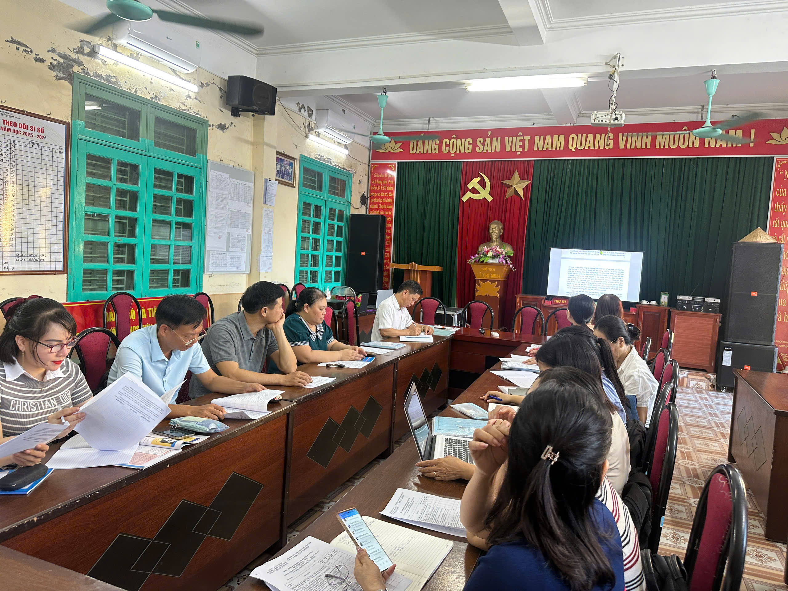 Thực hiện theo kế hoạch công tác, để chuẩn bị cho Hội nghị CBVC và người lao động của Trường THCS Tiên Thắng -Toàn Thắng, chiều hôm nay, Tổ KHXH đã có cuộc họp cấp tổ để thảo luận đóng góp ý kiến cho bản dự thảo báo cáo và bản tiêu chí xếp loại thi đua năm học 2025-2026. Về dự với Tổ KHXH có đ/c Lương Văn Thuẩn- Bí thư chi bộ, Hiệu trưởng nhà trường. Hội nghị diễn ra với tinh thần làm việc nghiêm túc, thẳng thắn, dân chủ và xây dựng để góp phần vào hoàn thiện cho dự thảo.