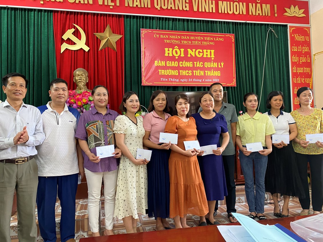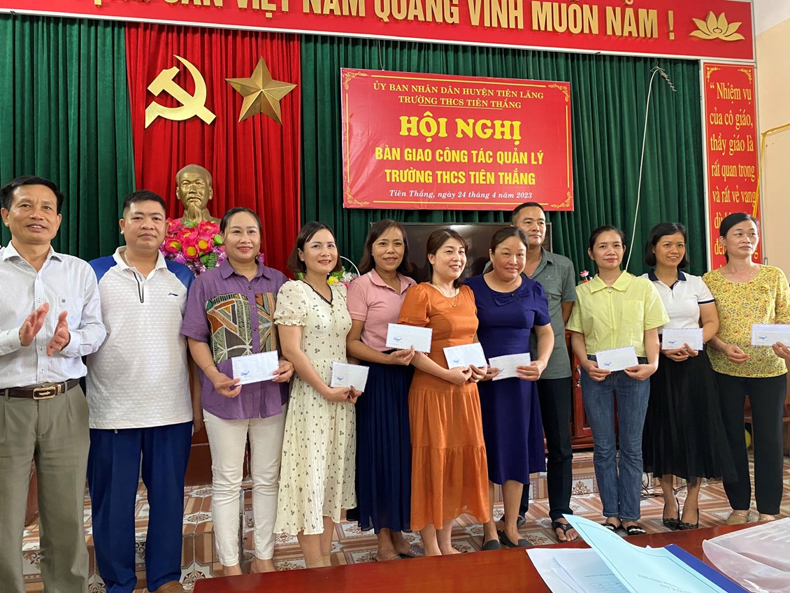 Đại diện lãnh đạo ĐU,HĐND,UBND phát biểu trao quà động viên khen thưởng các thầy cô có thành tích đóng góp trong năm học 2022-2023.