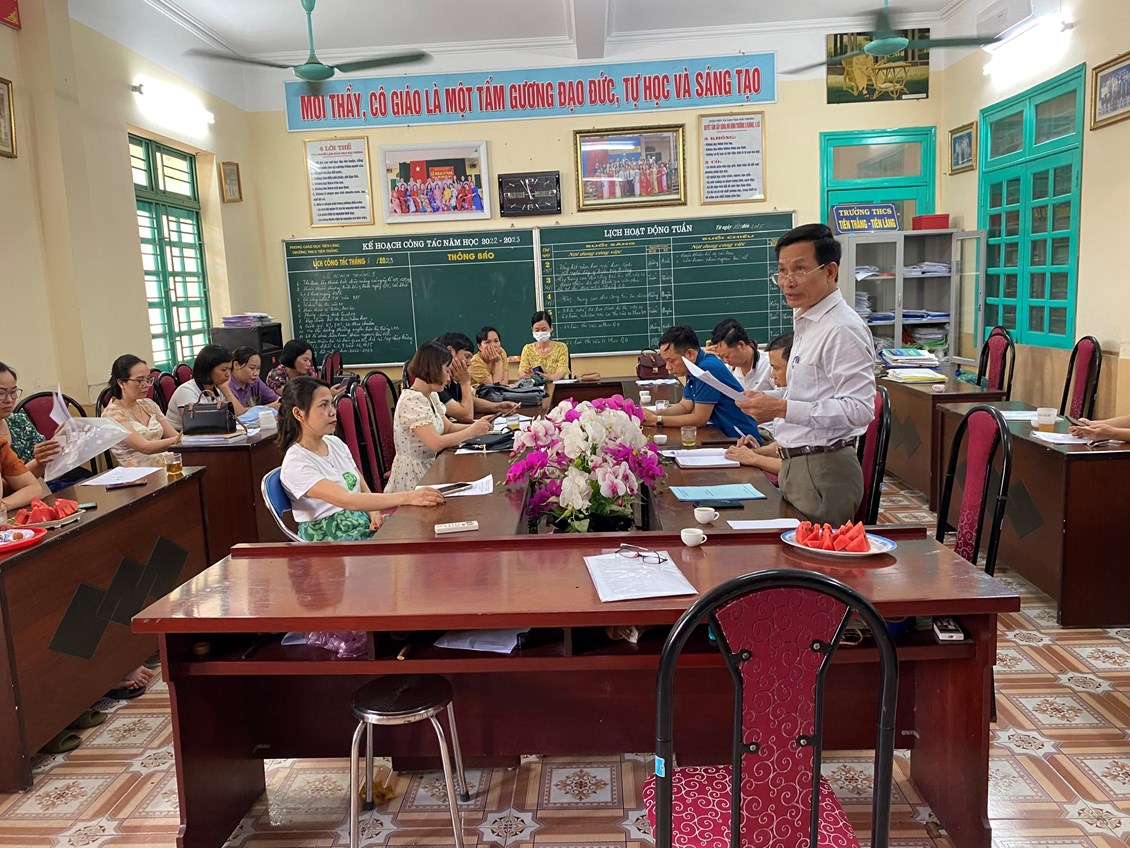 Trong buổi tổng kết, đồng chí HT đại diện BGH đánh giá những mặt làm được, chưa làm được trong năm học 2022-2023.