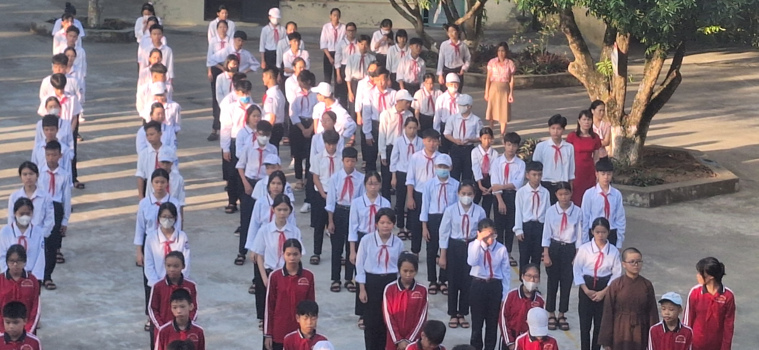 Sau phút tưởng niệm, các thầy cô giáo đã tuyên truyền HS thực hiện: