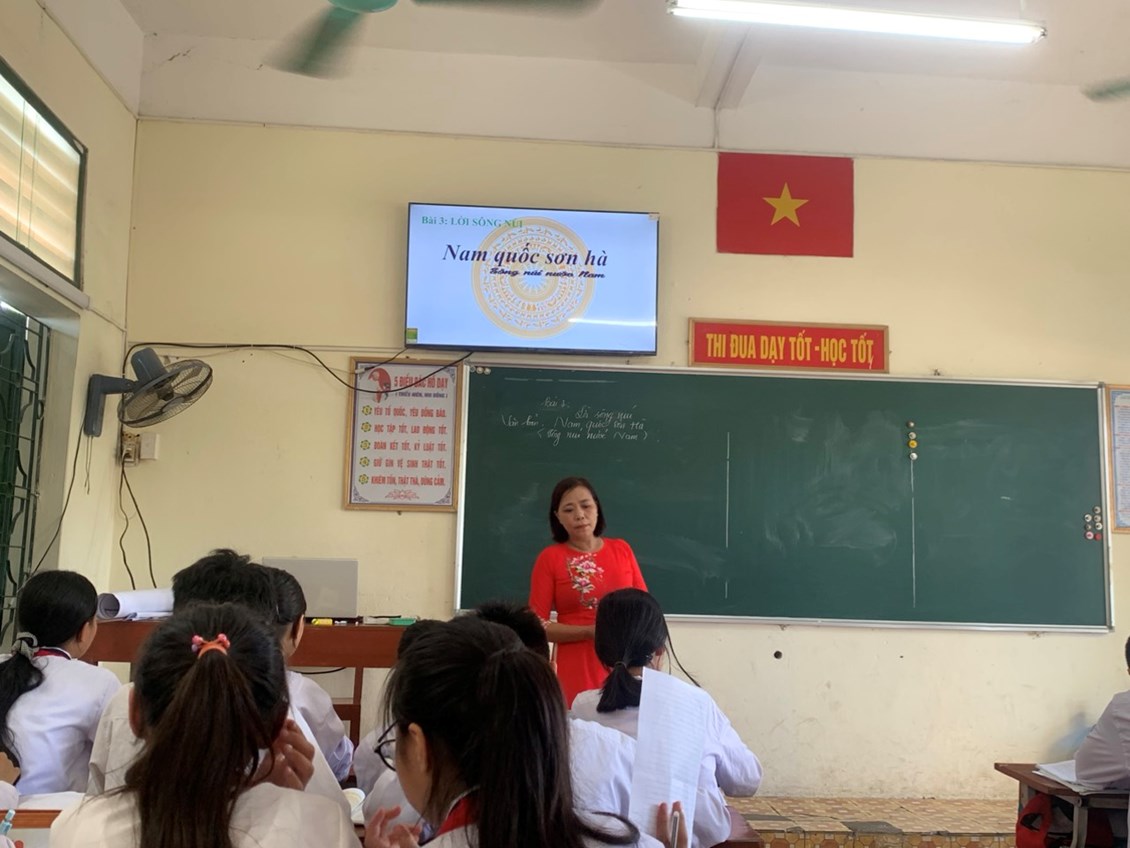 Giờ học môn GDCD do cô giáo Nguyễn Thị Huyên cùng học sinh lớp 8B4